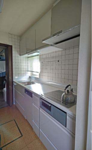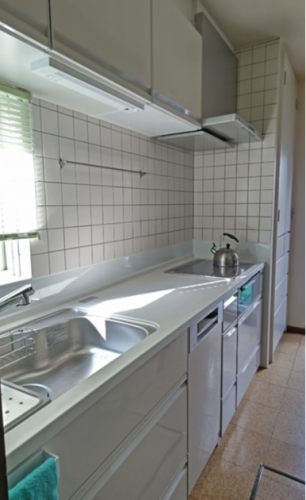 スペースがギリギリでしたが一部タイルを剥がして、ぴったり納めることができました。タイルを剥がした個所はキッチンパネルを貼りきれいに納めました。