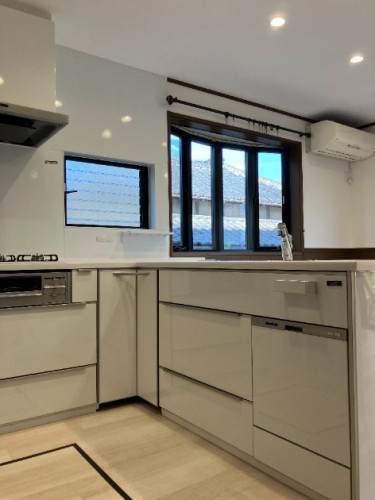 フルフラット対面キッチンですっきりと明るいキッチンになりました。