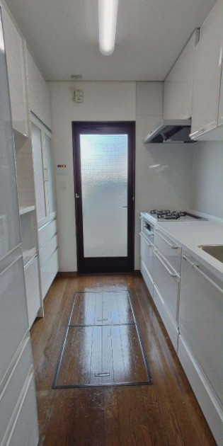 勝手口から差し込む明るさがキッチンのホワイトに反射してより明るく、また余計だった背面収納の奥行をカットすることで立ち位置が広く動きやすい動線とゆとりがより確保できました