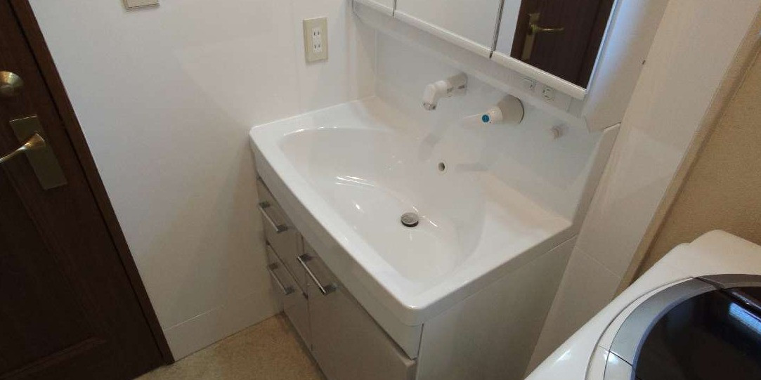 以前システムキッチンエーデルをご採用のお客様からでした。既存化粧台はハウスメーカー特寸商品でした。