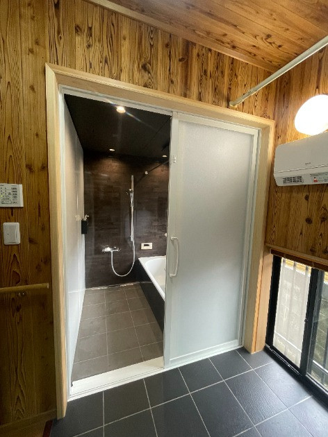 浴室を暗めの色にしたけど、思ったほど暗く感じず落ち着いた雰囲気だと、とても満足して下さっています。