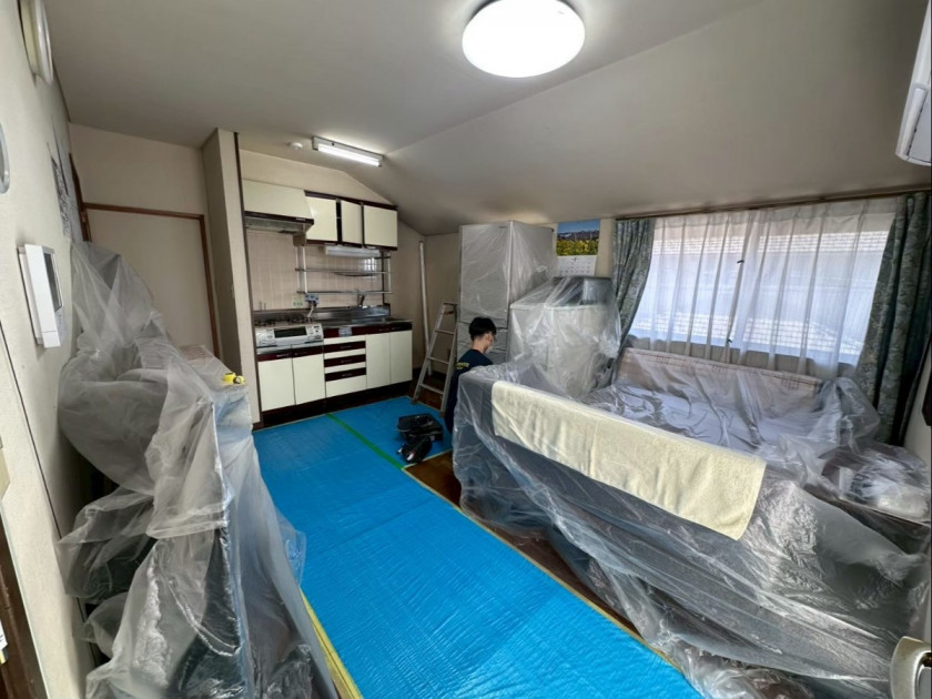 住みながらのリフォームなので養生を念入りに!!