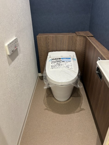 従来のトイレからシステムトイレへリフォームしたことで、タンクまわりがスッキリし、使いやすい収納も増えました。見た目もスタイリッシュで清潔感のある空間になりました。