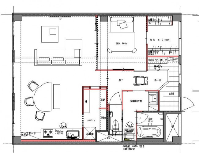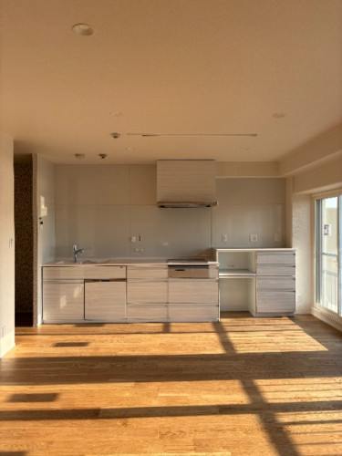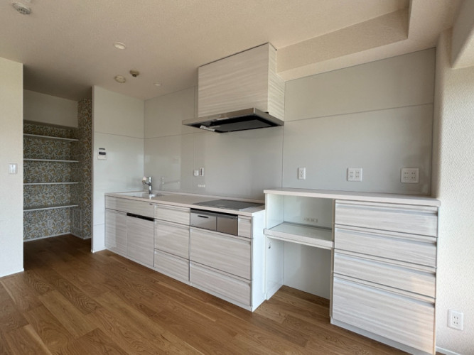 3LDKから間取りが大きく変わり贅沢な大きな空間のLDKとプライベート空間の2室での構成になりました。終の棲家と言う言葉が心に残るリノベーションでした。キッチンの一つ一つをお二人でお選びいただく時間がとても幸せな気持ちになりました。ゆったりとした時間の流れるLDKの一面に圧巻のトレーシアがお部屋の窓から見える絶景と重なり素晴らしかったです。