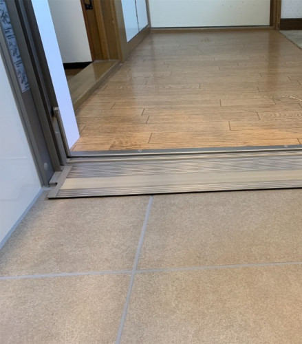 脱衣場との段差解消、手すりの設置で将来の不安にも備えました。