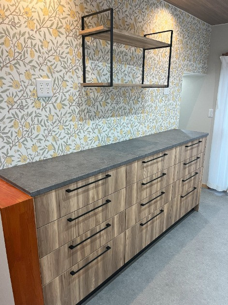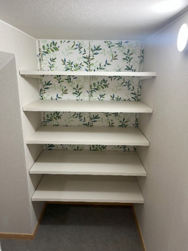 また、キッチン裏の収納も背の高い収納からカウンター収納に変えることで、スッキリと明るいキッチン空間になりました。