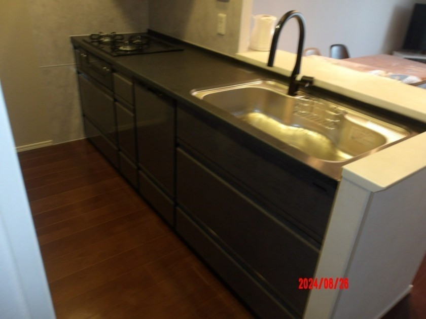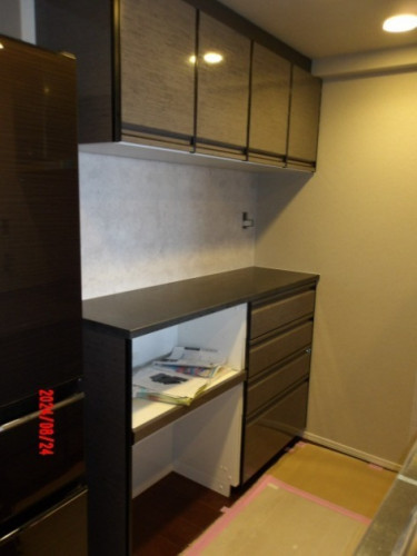 食洗器がどうしてもキッチンの幅を占領してしまい、機能、収納等改善の為のリフォームです。