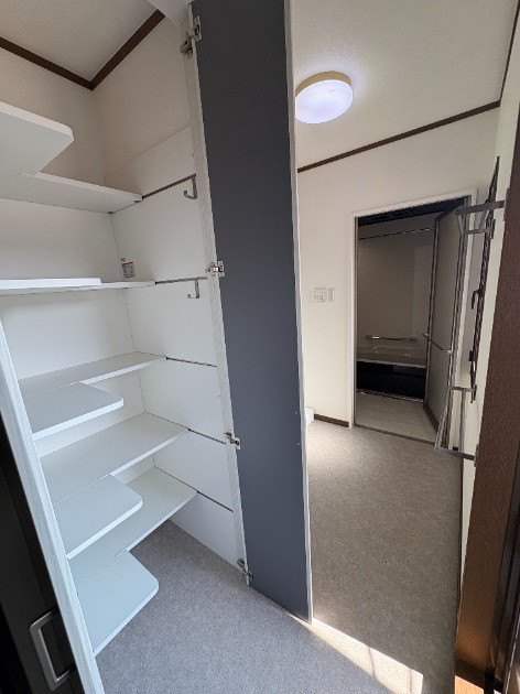 90cm角の押入れもL型の棚で奥行を小さくして、物の数量等も一目瞭然になり、整理整頓が楽になりました。