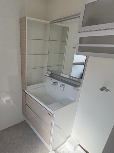 以前は収納不足で洗面用具が散乱していましたが、スッキリと片付くようになりました。