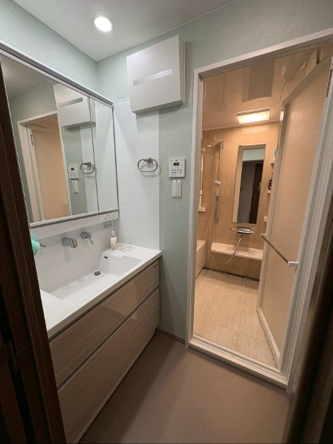 三面鏡で収納力も増えて、以前からの希望でもあった蓋つきでコンパクトな分電盤にも取替えてすっきりしました。
